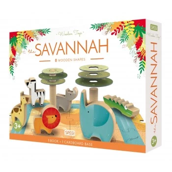 Sassi Puzzle, Book and Wooden Savannah Animals