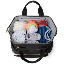 The Skip Hop Main Frame Wide Open Backpack Black makes it easy to access everything that’s packed inside thanks to a structured frame that opens wide and stays put for a clear view.