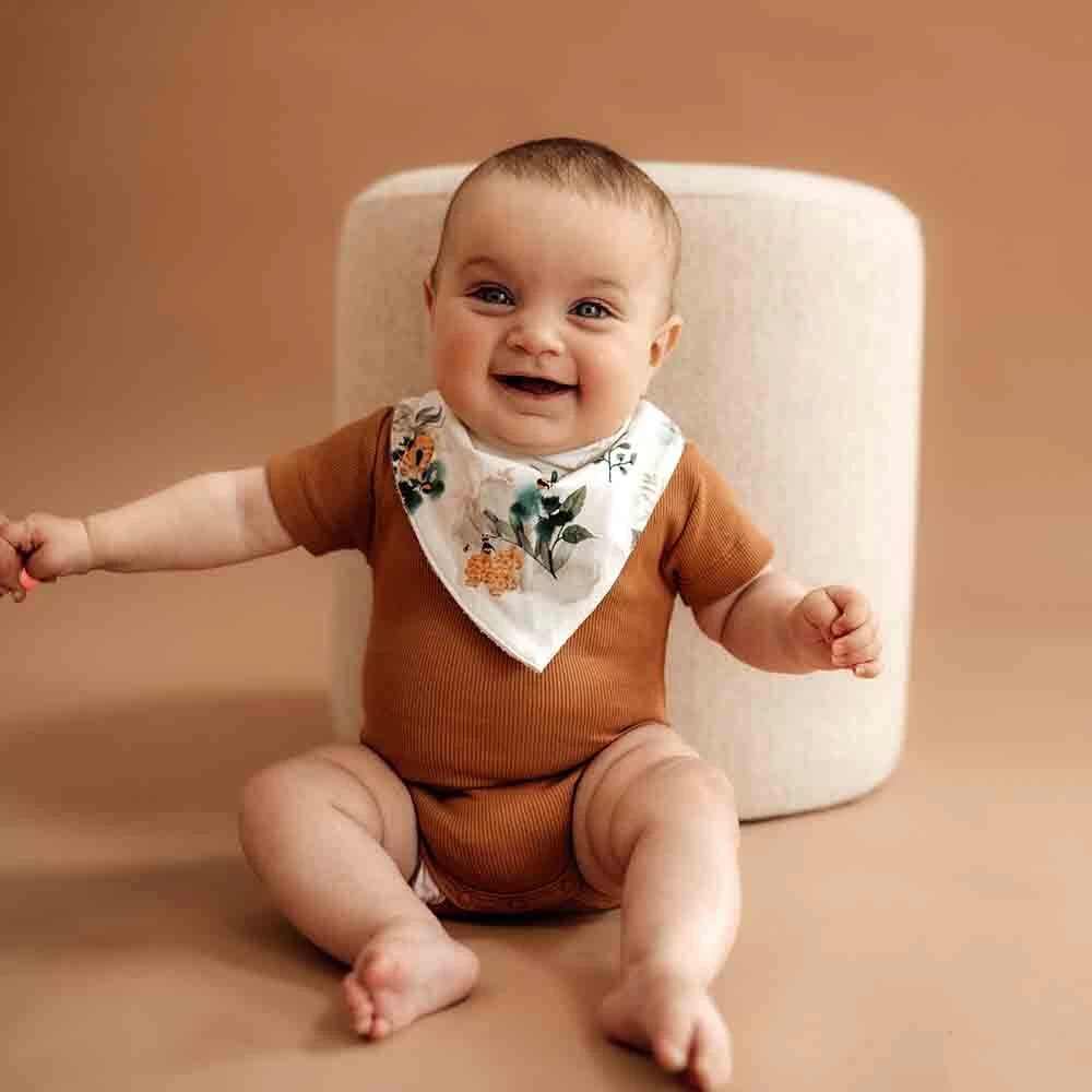 The Snuggle Hunny Kids Dribble Bib Garden Bee adds extra style and help keep your infants outfit clean. Designed to look less like a bib and more like a trendy accessory, beautiful and practical.