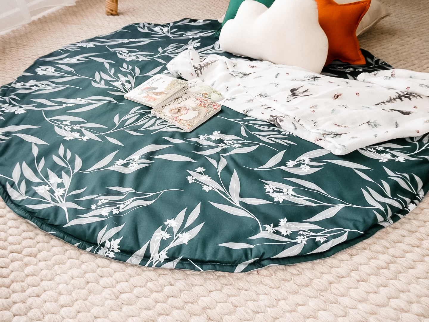 The Snuggly Jacks Playmat Eucalyptus is made from 100% cotton fabric ensuring the safety of your baby. Measuring 100cm in diameter. Perfect to throw on the floor and use at Tummy time, this playmat is just the perfect thickness to offer a soft surface but to still allow your baby to move freely when they are learning to sit and crawl.