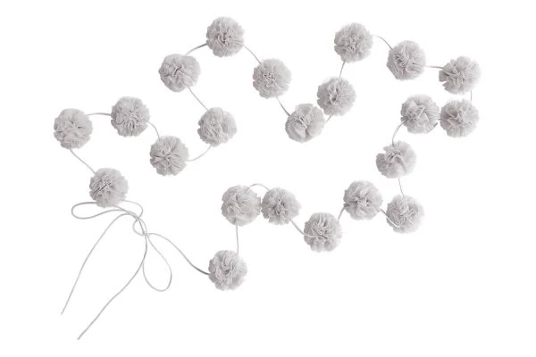 The Spinkie Baby Mini Pom Garland Oyster will give your canopy a fun, festive look with our Mini Pom-Poms Garland in delightful colors. Each garland has 22 mini pom-poms, and each pom-pom is 2 inches in diameter. You can also use this as a decorative accent on your bed frame, cot, or wall!
