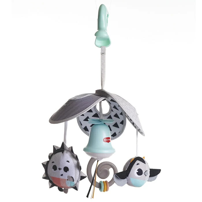 The Tiny Love Pack n Go Mobile Magical Tales has 4 activities, including a bell-shaped wind chime and owl rattle, that stimulate cognition, senses and fine motor skills. The Tiny Love toy features the Magical Tales Tiny Pioneers, cute characters that accompany babies while out and about, reassuring them with their familiarity and supporting emotional intelligence.