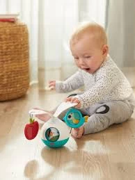 When babies have mastered sitting up, they can continue to enjoy the toy’s features, marveling and the charming sound and lights feedback they create, which will help them grasp the idea of cause and effect, or the fun peek-a-boo window, which will help them understand the idea of object permanence.