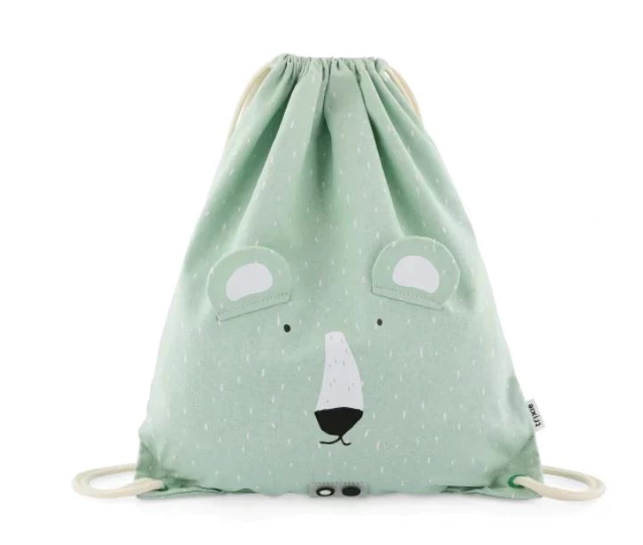 Trixie Drawstring Bag Mr Polar Bear is a fun and handy gym bag featuring our animal friends, which you can also use as a swimming bag thanks to its water-repellent coating.