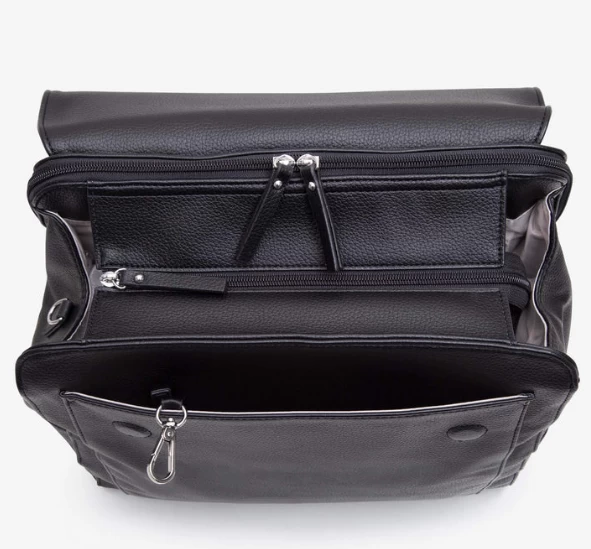 Featuring a sleek minimal design that looks more like a designer backpack than a baby bag, you can make Emmy your own by adding a personalised luggage tag, VANCHI tassel, or dummy keep safe to the perfectly positioned d-ring. The front flap features two hidden magnet positions, so even when Emmy is full the flap still comfortably covers the main compartments and she still looks good.