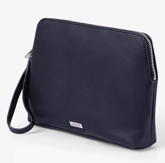 The Vanchi Everything Pouch Black features 3 internal pockets including a zippered privacy pocket, the Everything Pouch is surprisingly spacious. It comes with a wristlet that you can hang from a pram or bag, and you can add matching wipeable vegan leather activity mat that fits perfectly inside.