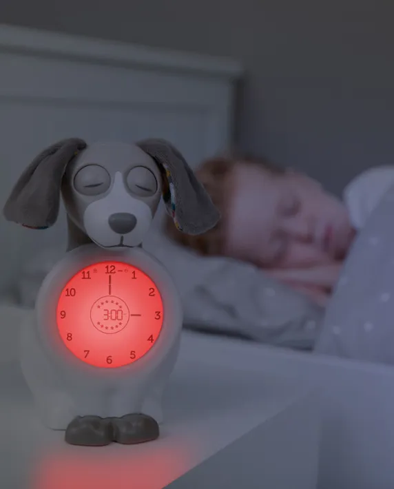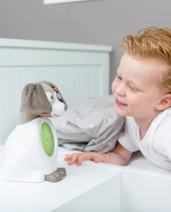 Zazu Sleeptrainer Davy the Dog teaches your child with visual indicators when to stay in bed and when it is OK to get up.